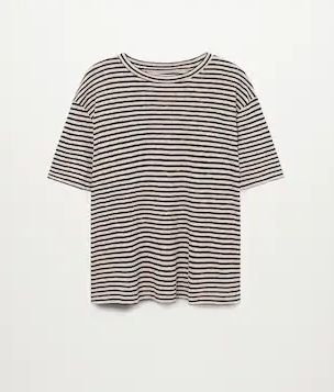 Las camisetas de rayas son una prenda básica en cualquier fondo de armario, perfecta para conseguir looks sencillos, pero con un toque de estilo extra. Es un clásico que siempre favorece, aporta elegancia y es muy versátil, ya que se puede combinar con vaqueros, pantalones de corte más formal, faldas, shorts…. Ahora en Mango podemos hacernos con nuestra camiseta de rayas, de color negro y blanco roto, con este modelo de algodón, manga corta con costura de hombro caída y cuello redondo. Un corte sencillo pero que nunca falla. El precio es de 15,99€.