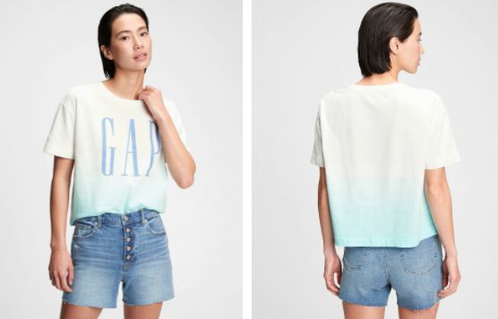 Damos ahora un giro de 180 grados en el estilo de camiseta que seleccionamos en esta review de las camisetas de la nueva colección de El Corte Inglés. La firma GAP, una marca asociada a la moda más juvenil. Precisamente por eso la hemos elegido. Sin renunciar al buen gusto, GAP apuesta por una prenda de hombros anchos, tipo top oversize, de cuerpo recto y manga corta tradicional. En la parte frontal no puede faltar el logo de la casa. Puedes comprarla tanto en azul marino como en este modelo en dos tonos con degradado. La marina es monocolor. Hazte con ella por tan sólo 29,95 euros.