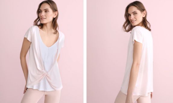 Para finalizar, elegimos esta camiseta de manga corta para mujer de la marca Southern Cotton. Eso sí, en vez de en algodón, está confeccionada en lino. Este tejido también ayuda a la traspiración y la frescura en verano. Presenta un diseño original, en doble capa, simulando una especie de chaqueta cerrada en nudo por la parte posterior. Presenta buen caído en el cuerpo, es ligera, de manga muy corta y a buen precio (25,99 euros). Puedes comprarla en rosa palo, en azul índigo (muy bonita) y en verde pardo, uno de los colores de la temporada.