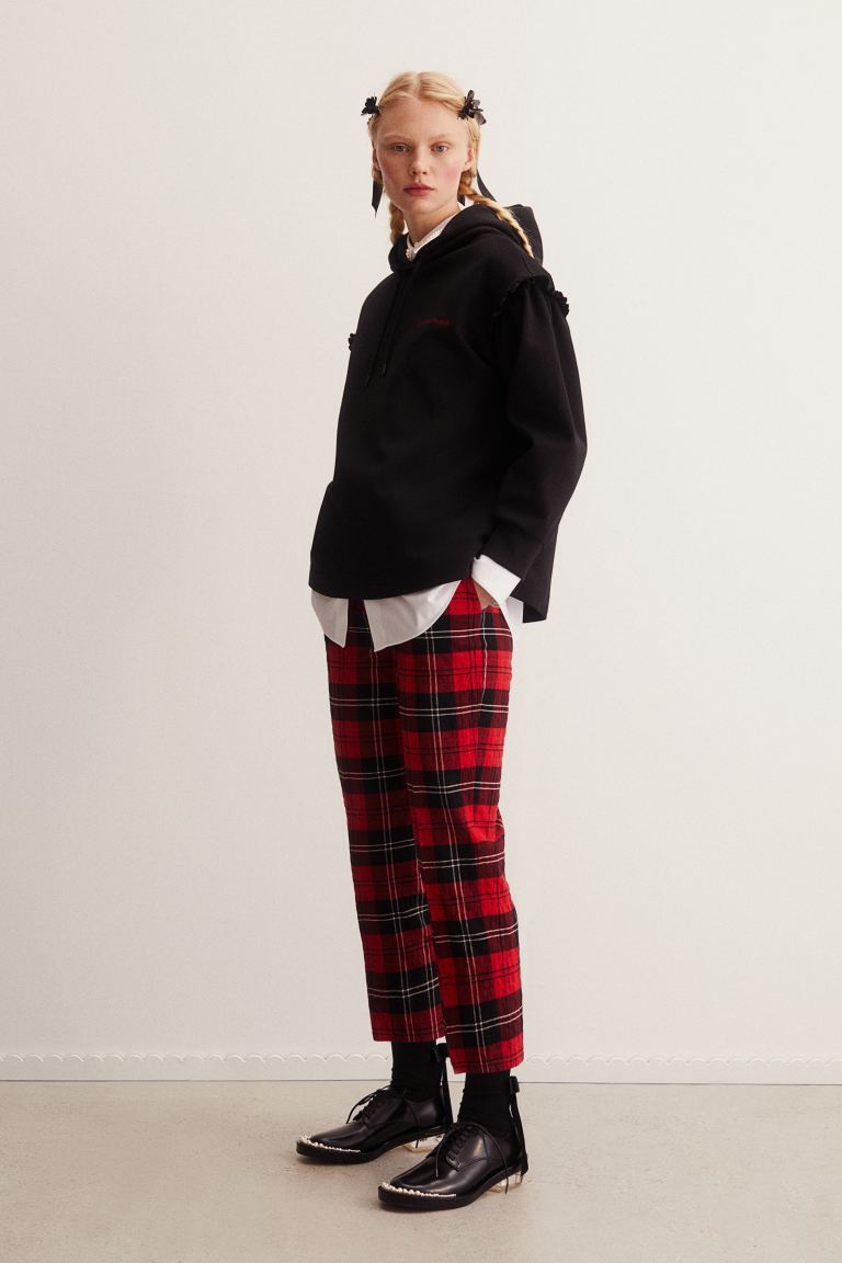 Las sudaderas están marcando tendencia en los últimos meses, y por ello no podían faltar en la colección de Simone Rocha, aunque reinventadas a su manera. Este modelo en concreto se sale de lo común por muchas cosas. Para empezar, es una prenda confeccionada con algodón orgánico grueso y cuenta con el logo de la diseñadora bordado en la parte delantera.