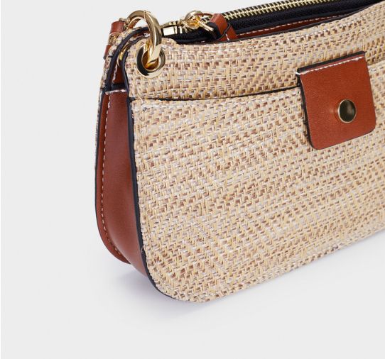 Nos encanta este bolso. De hecho nos parece uno de los más originales de todos los que hemos encontrado en el catálogo de Parfois. Y nos encanta porque se han inspirado en las bolsas de playa para elaborarlo. Como puedes ser, el principal material con el que está confeccionado en parfia. Que precisamente es el material con el que se confeccionan las típicas bolsas y cestos para llevar a la playa. Pero a diferencia, este está reforzado con cuero. Lo que lo hace muy resistible. Y como no podía ser de otra manera, es muy barato. Solo cuesta 20 euros.