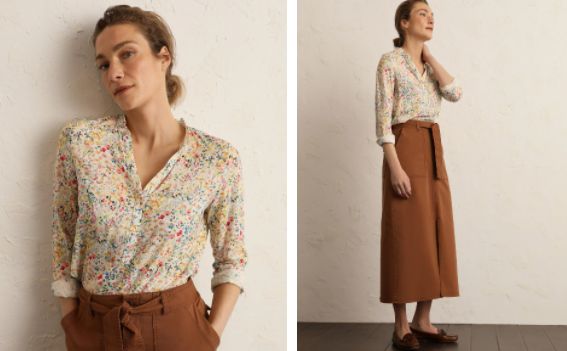 Para la primavera, las marcas de moda como Lloyd’s apuestan por los colores y los estampados. Hay que reconocer que el conjunto que presenta la modelo no hace justicia a esta blusa en particular. Con unos pantalones jeans o unos chinos, mostraría todo su potencia como blusa de manga larga con un alegre estampado.