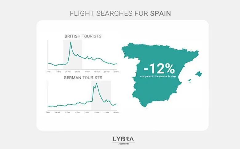 Sin duda, este importante descenso de las búsquedas se debe a las políticas de cierre promulgadas por los principales países interesados en España, que de este modo han desanimado a los viajeros.