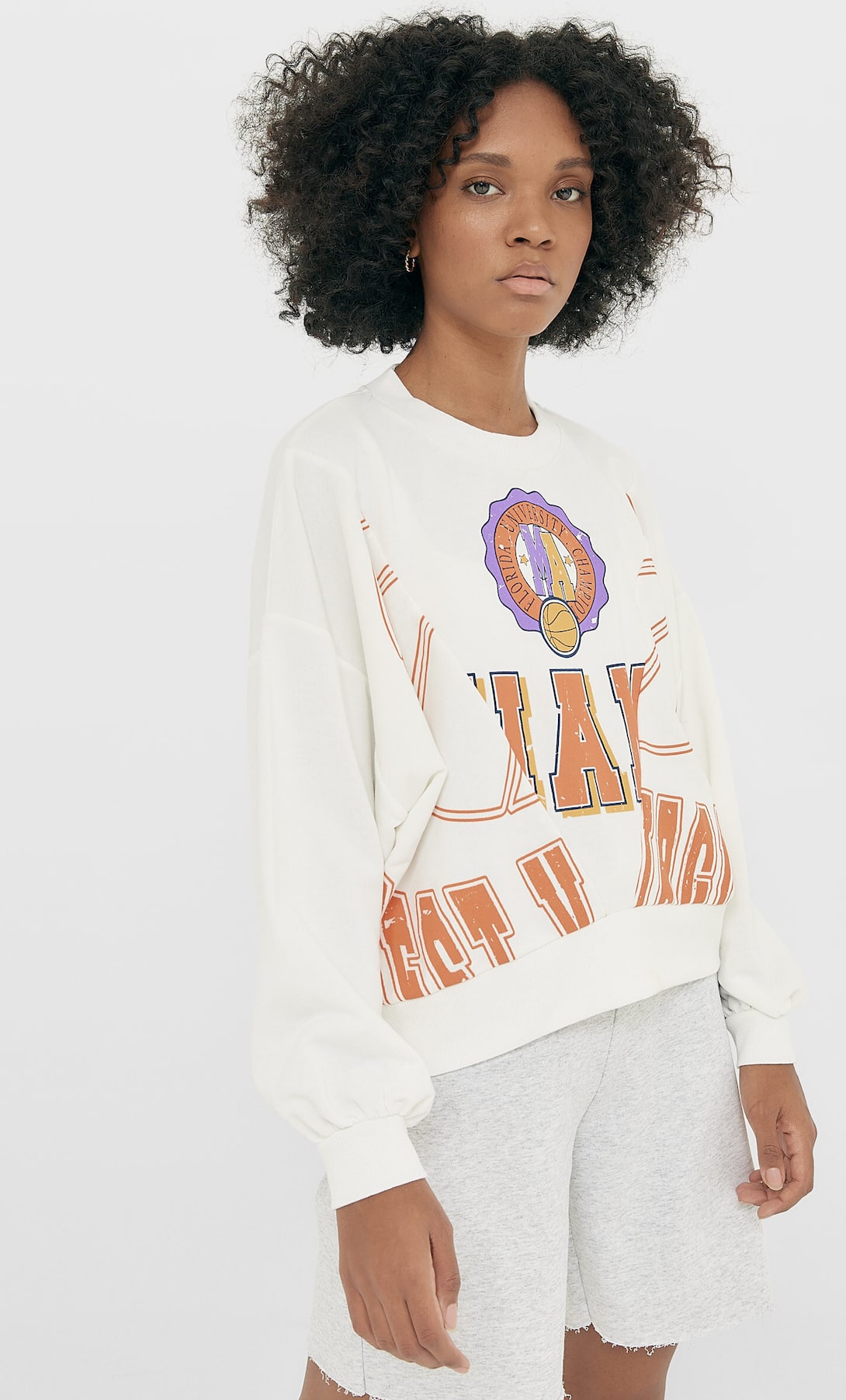 Pasamos a otra de las prendas más curiosas de Stradivarius y que tiene un precio realmente económico. Se trata de una sudadera que aunque a simple vista no tiene nada destacable, al fijarte en los detalles de su estampado puedes ver donde está la innovación.