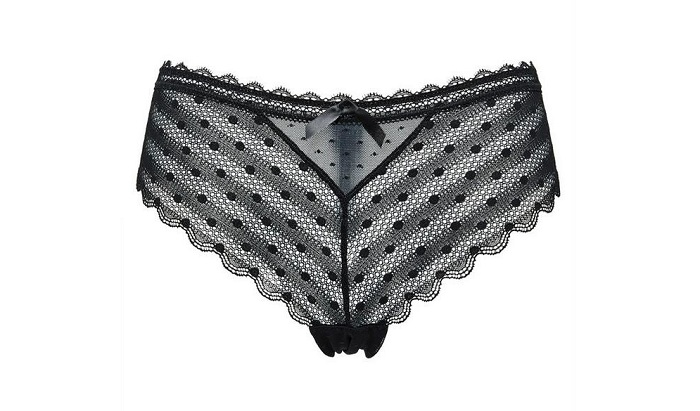 Se trata de una prenda de malla con lunares y detalle de lazo . Sí, se trata de la combinación con el anterior sujetador, aunque nada te impide combinarla con otro sujetador en negro. El precio de esta braguita es de 5 euros.