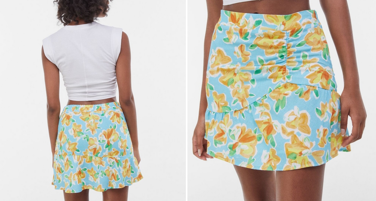 Una de las mejores faldas de Bershka que no pueden faltar en tu fondo de armario para la época primaveral es esta falda mini lino print flores, que puedes comprar por solo 19,99€.