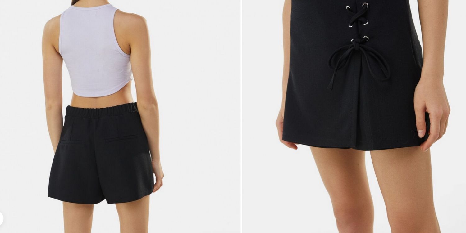 Esta falda skort lace up de Bershka está disponible en varias tallas, y con un precio de solo 19.99€. Por delante es falda, mientras que por la zona de atrás se muestra como un pantalón.