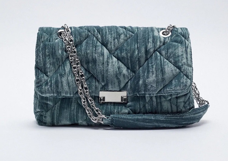 El último producto femenino de la lista es esta maxi bandolera acolchada de terciopelo. Es de color azul y tiene un tamaño grande de 23 cm de alto, 31 cm de ancho y 8 cm de fondo. Asimismo, cuenta con cuerpo y solapa acolchados de terciopelo, asa de hombro con cadena e interior forrado con bolsillo. Su cierre es con pieza metálica.
