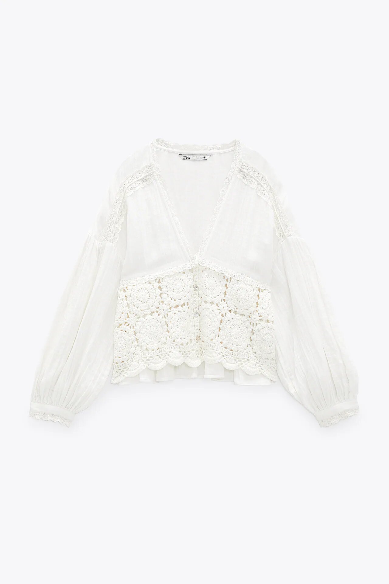 Esta camisa de Zara, a pesar de ser de un liso blanco, tiene multitud de detalles que la convertirán en la favorita de tu armario. El crochet se ha puesto de moda esta primavera, y si puedes hacerte con un diseño que lo tenga, no debes perder la oportunidad.