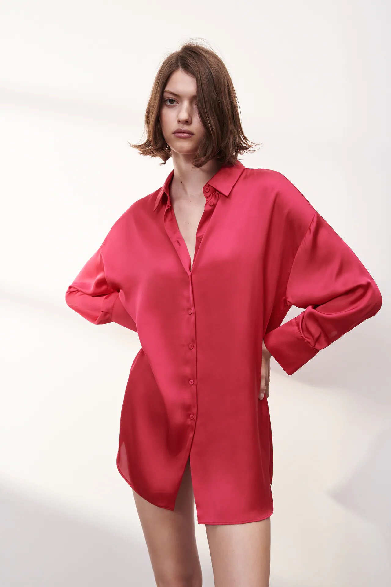 Una de las camisas de Zara que triunfa sí o sí, es este modelo fluido y satinado oversize. Y es que las prendas de gran tamaño son ideales para poder crear diferentes looks. La puedes llevar tal cual o por dentro de los pantalones o la falda. Otra opción es anudarla a la cintura, pues también se ve ideal si sabes hacerlo correctamente.