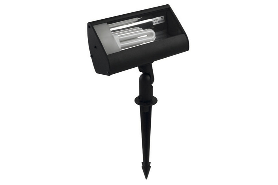 Con este proyector tendrás una fuente de luz para enfocarlo hacia una planta, pared, escultura, etc. Además, es de color negro, resistente a la intemperie, y con capacidad para una bombilla.