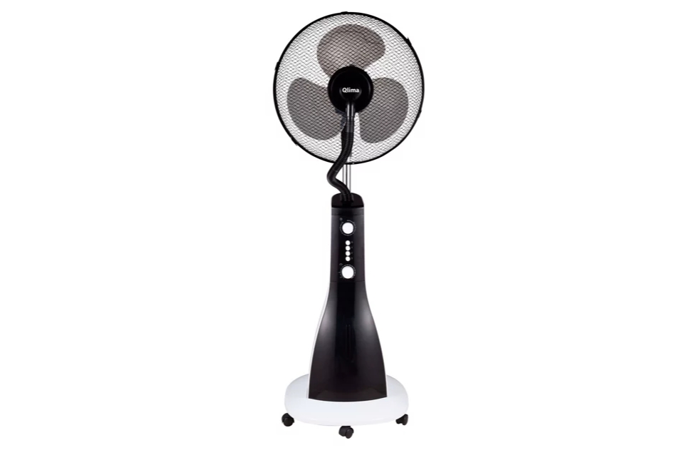 Este ventilador tiene una potencia de 90W, con 3 velocidades controlables y con cabezal oscilante. También tiene ruedas para que se pueda desplazar fácilmente de un lugar a otro. Además, gracias a su depósito de agua y pulverizador, generará una agradable sensación de frescor generando una bruma.