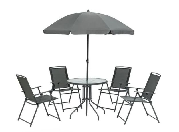 Todo espacio exterior necesita un conjunto de mesas y sillas para poder estar tranquilamente. Aunque todo dependerá del espacio disponible, ya que en caso de que sea reducido, tendrás que elegir entre un comedor exterior o un salón exterior. Si optas por el primero, para comer y cenar siempre que sea posible en la terraza o jardín, aprovecha este set de cuatro sillas y mesa de Lidl. Además de los elementos mencionados, el precio incluye la sombrilla, que os protegerá de los rayos del sol mientras comes o desayunas tranquilamente en el exterior. Se trata de un set de acero; la mesa presenta tablero de vidrio endurecido. Todo ello se puede plegar y recoger con facilidad.