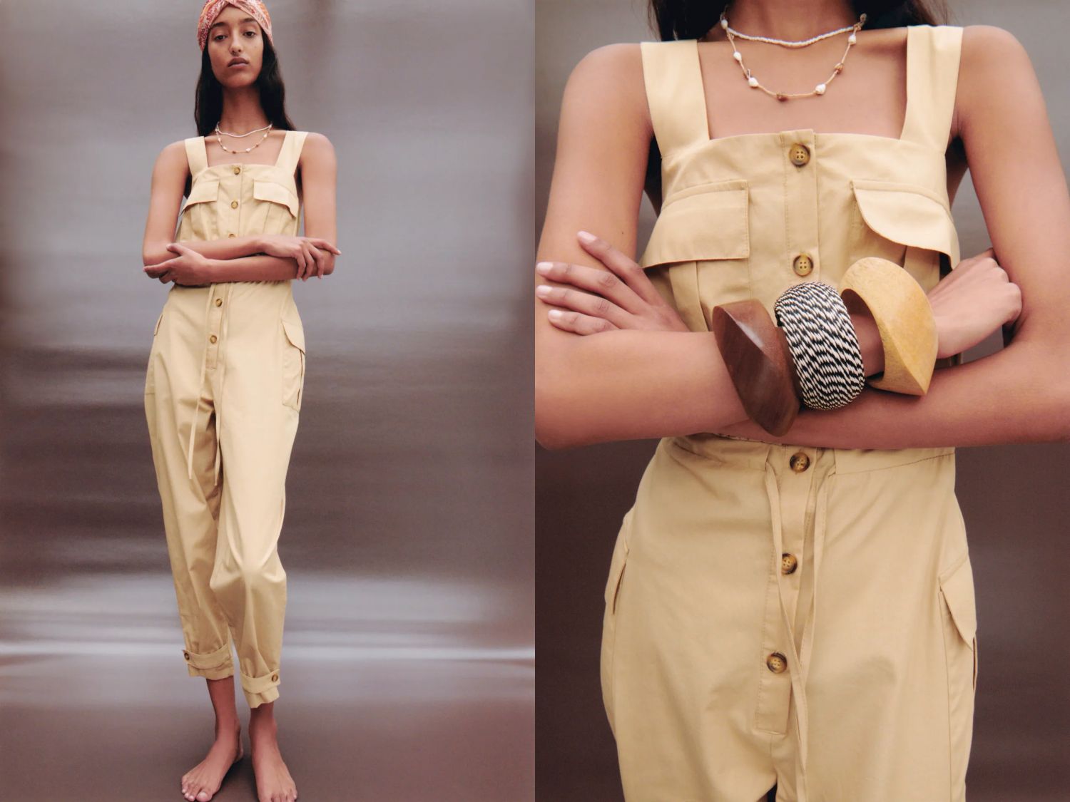 Uno de los monos asequibles de Zara que deberías considerar si forma parte de tu fondo de armario es este mono cargo popelín. Disponible en varias tallas y en un único tono beige. El precio es de tan solo 39,95€.