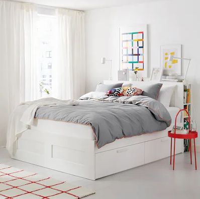La serie de muebles para dormitorio Brimmes de Ikea cuenta con soluciones muy prácticas para aprovechar al máximo el espacio, siendo esta una de las más completas. Se trata de una estructura de cama con varias zonas de almacenaje oculto, de 140×200 cm. En cabecero cuenta con varios espacios de almacenaje muy práctico a modo de mesilla de noche, para tener a mano los libros, las gafas o el móvil. Debajo de la cama hay 4 cajones grandes con mucho espacio para guardar ropa de cama, edredones y almohadas. Los cajones se deslizan fácilmente gracias a las ruedas de la base y en la parte superior del cabecero hay agujeros para pasar los cables de los cargadores y las lámparas, y que queden ocultos. Tiene un cabecero alto muy cómodo para sentarse en la cama a leer o a ver una película. El precio ha bajado desde los 370€ iniciales a 330€.