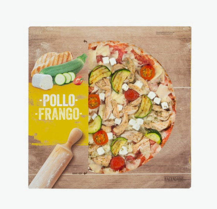 Los supermercados de Mercadona siempre se han caracterizado por tener una de las mejores marcas blancas de pizzas precocinadas, las de Hacendado. Aunque en realidad, como todo el mundo sabe son las de la marca Casa Tarradellas. Pero donde le faltaba por mejorar un poco era en cuanto su oferta de pizzas ultracongeladas. Pero eso ya es cosa del pasado. Porque recientemente acaba de incorporar varios productos, como por ejemplo esta pizza de pollo que nos ha encantado. Además, tiene un precio muy económico para lo que rinde. Solo cuesta 3’60 euros.