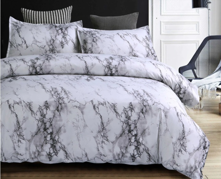 La elegancia hace acto de presencia en nuestra vida gracias a un edredón como este. Sin duda, es una de esas ideas económicas que resultan de lo más vistosas. Porque ese estampado no puede escaparse. El efecto mármol lo vemos en muebles pero ahora lo podrás tan cerca de ti como en tu propia cama.