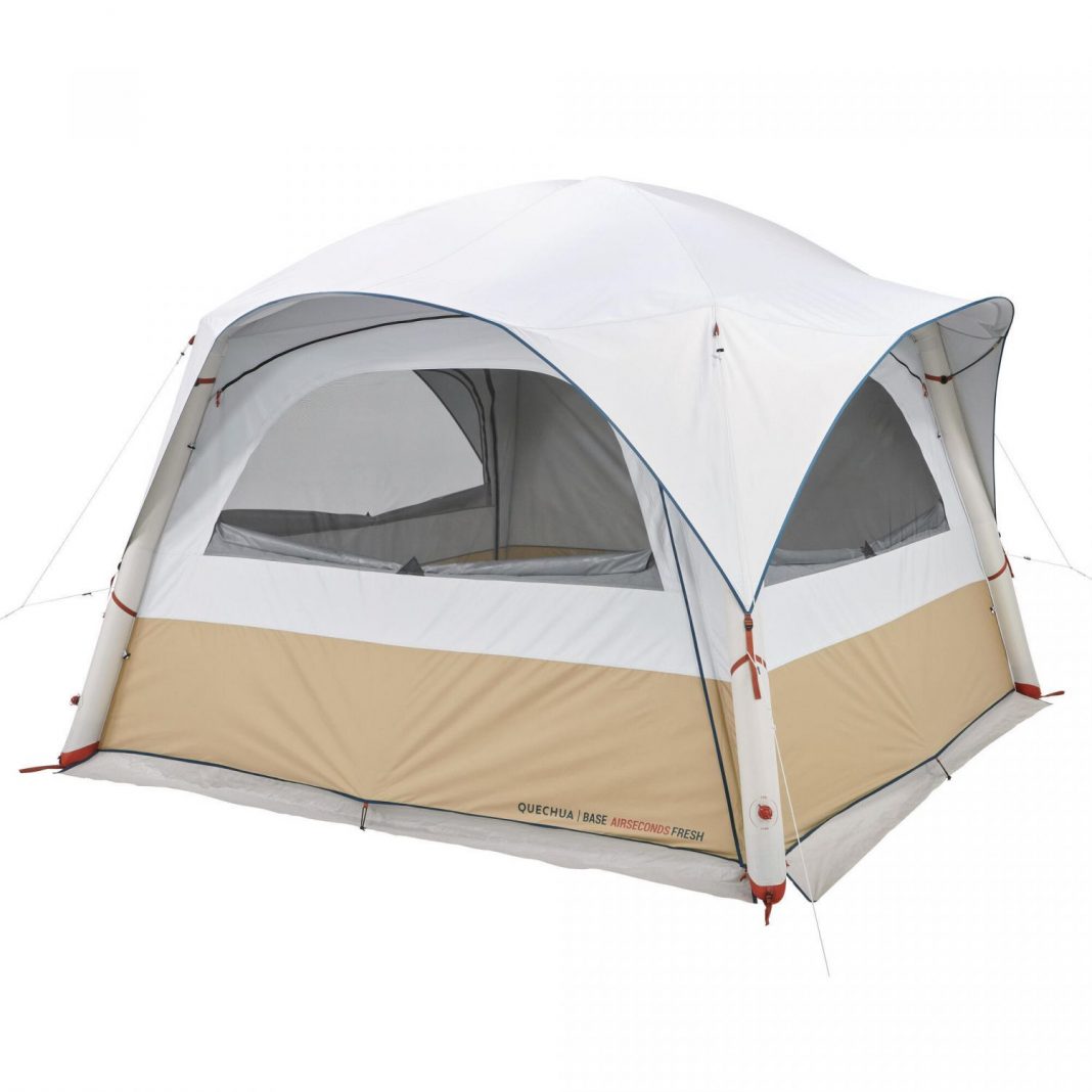 El equipo de Decathlon ha concebido, el habitáculo hinchable base Air Seconds Fresh para 8 personas que desean ir de camping. Es un habitáculo completamente grande con una estructura con autosujeción, y espacio para 8 personas. Estas podrán estar protegidas gracias a las tres puertas y a las mosquiteras grandes. La puede obtener por la página web de Decathlon por un simple precio de 299,99 euros.