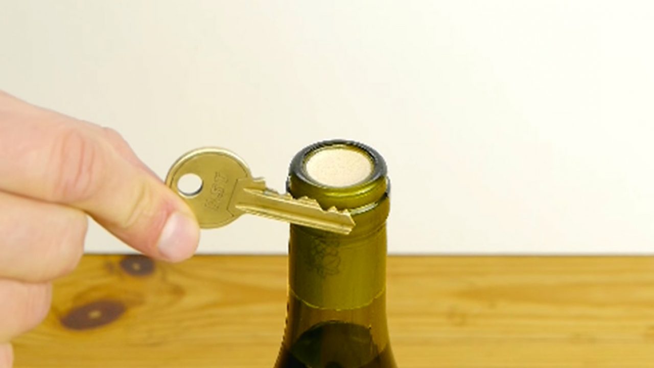 La idea es insertar las llaves de manera inclinada y lo más profundo posible en el corcho, de esta manera nos servirá como palanca para poder girarlo hasta sacarlo de la botella de vino. Se debe de asegurar de hacer este truco con llaves que sean resistentes, para que estas no se doblen o rompan. Sobre todo, para proteger tus manos para que no tengan ninguna lesión al hacer fuerza. Es un truco que funciona mejor si los corchos son sintéticos; en caso que estos sean naturales, hay que ir girando la llave poco a poco para evitar romperlo. Que esperas en utilizar esta técnica sin necesidad de un sacacorchos en casa.