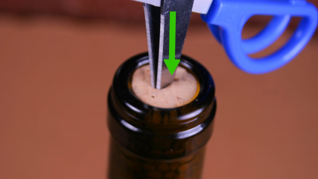 Uno de los mejores trucos para abrir una botella de vino sin sacacorchos, es usando un par de tijeras pequeñas para niños. Se debe abrir las tijeras por completo e insertar la cuchilla más delgada en la mitad del corcho, utilizando un poco de presión con cuidado. Tenemos que introducirla hasta la mitad del corcho con mucho cuidado, no dentro de la botella ni romperlo.