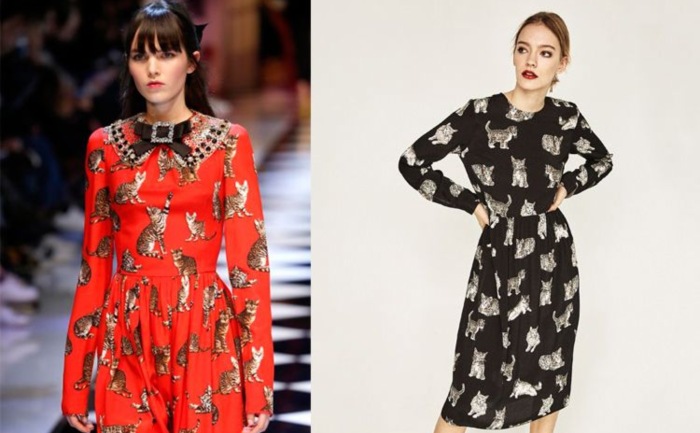 Zara también decidió copiar a Dolce&Gabbana. Hace algunas temporadas, la marca de Dolce&Gabbana sacó un vestido precioso con un estampado de gatitos. Todo el mundo quería tener uno, aunque el precio del vestido de la firma italiana no tenía un precio demasiado asequible.