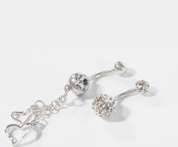 Y terminamos este artículo en el que repasamos varias piezas de bisutería de Bershka para que al ponerte presumas durante esta primavera con un artículo muy especial. Se trata de un set de dos piercings para el ombligo. Ahora que llega el buen tiempo muchas mujeres están renovando sus piercings para poder lucirlos en la playa, en la piscina o en un simple paseo. De uno de ellos cuelgas varios corazones y el otro tiene un diseño más clásico. Al comprar este set, tendrás la opción de ir cambiando uno por otro. Solo cuesta 8 euros.