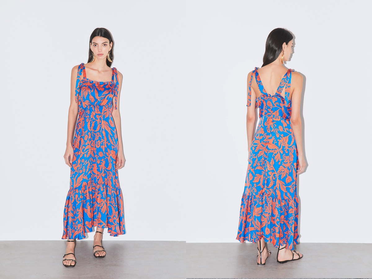 Otra de las prendas a destacar de Sfera es este vestido estampado de tirantes que encontrarás en varias tallas y por un precio de solo 29.99€.