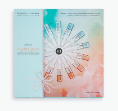 No podía faltar alguna de las novedades de Deliplus para esta fecha tan señalada. El lote facial mujer Deliplus Hydra Glow, que tiene un precio de 6 € , incluye 14 ampollas de 2 ml cada una para seguir el plan 14 días recomendados. De estas, 7 ampollas son para hidratación de la piel y las otras 7 para mejorar la luminosidad. Según explica las instrucciones del plan recomendado, hay que usar dos ampollas al día: hidratación por la mañana y luminosidad por la noche. Ojo, porque cada una de ellas te tiene que dar para dos días.