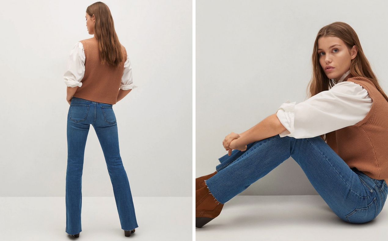 Uno de los vaqueros más interesantes de Mango es este modelo de jeans flare acompasados que podrás comprar en diversas tallas y colores (azul medio, azul claro, blanco y negro) por solo 29.99€.