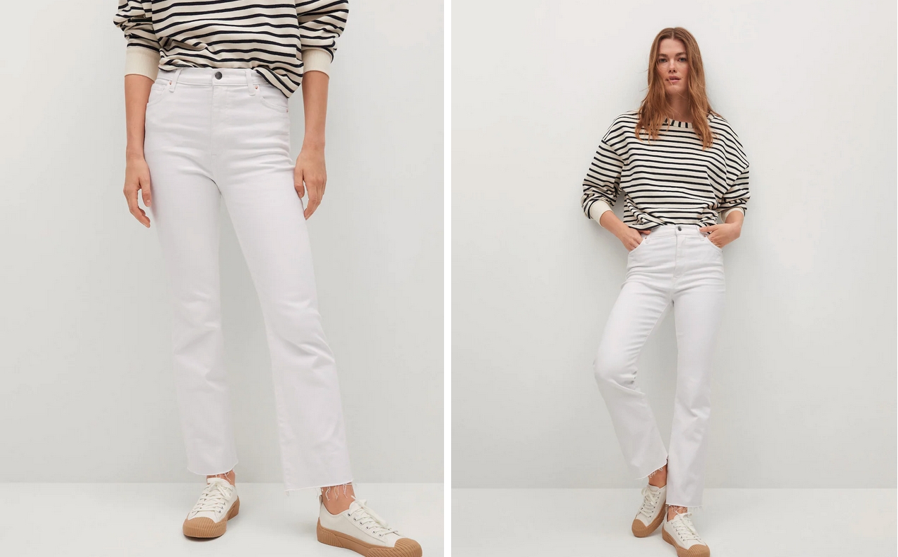 Mango también tiene estos jeans flare crop que son tendencia. Los encontrarás en varias tallas y en varios colores donde elegir: blanco, azul medio, beige, rosa pastel y negro. Todos ellos por 29.99€.