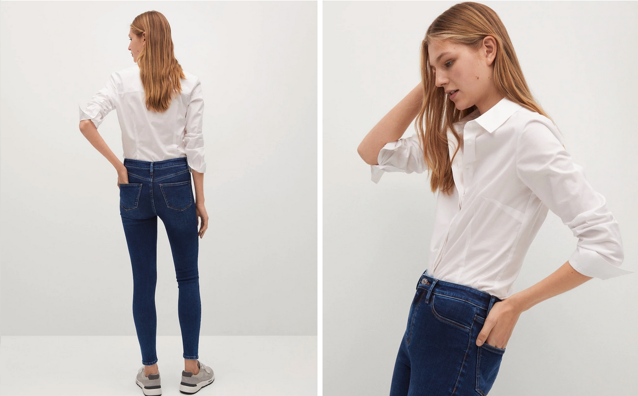 Si te gustan las prendas vaqueras, pero no quieres renunciar a la elasticidad, comodidad, y adaptabilidad de los leggings, entonces no puedes dejar pasar estos jeggings de Mango. Están disponibles por 19.99€.