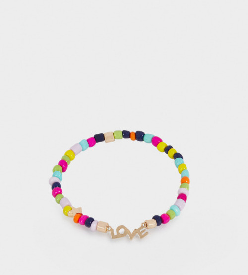 Definitivamente la primavera es una época en la que pega bastante lucir colores. El propio ambiente tan especial que se vive en esta época del año así lo reclama. Por eso hemos querido seleccionar del catálogo de Parfois esta pulsera de abalorios con colores ¡muchos colores! Pero además, tiene otro detalle que te harán mejorar tu look. Y es que de una parte de la pulsera cuelgan varias letras que forman la palabra love. Así que se trata de un artículo que su originalidad lo hace muy especial. Además solo cuesta 6 euros.