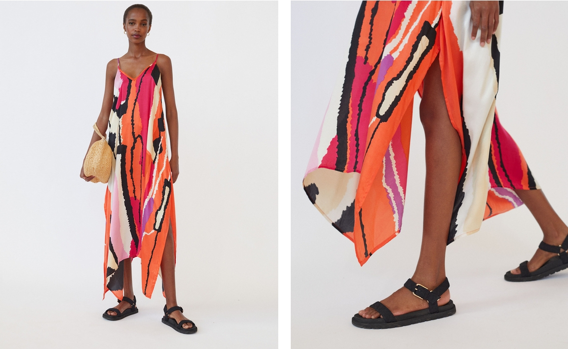 Este vestido estampado naranja es otro de los más llamativos en cuanto a diseño. Parfois ha pensado en las más atrevidas para esta prenda que podrás comprar en una sola tonalidad, y en varias tallas, por solo 17.99€.
