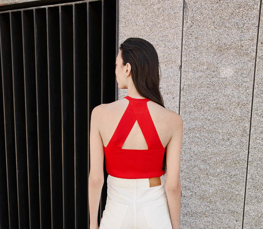 Si hay una prenda para mujer que se identifique con esta época del año en la que las temperaturas empiezan a subir y en la que el varano ya asoma a la vuelta de la esquina, son precisamente los tops. Y lo bueno respecto a ellos es que hay tantos diseños originales y de tantos colores diferentes que nunca es puedes aburrir de coleccionar este tipo de prendas en tu armario. Nosotros queremos mostrarte este de Sfera, que nos ha llamado la atención, además de por su intenso y bonito color rojo, por su diseño cruzado en la espalda. Tiene un precio de 16 euros.