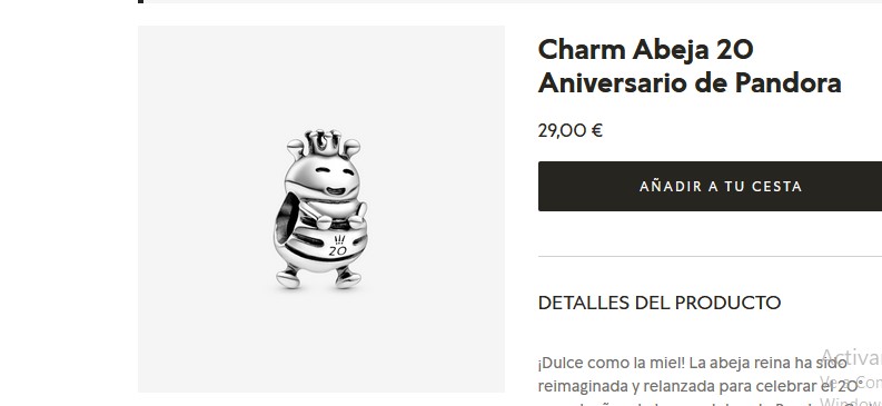 Es una de las hermosas joyas de la pandora, esta fue relanzada para celebrar el 20º cumpleaños de los amuletos que ofrece pandora. Estas son fabricadas en plata de primera ley, cuenta con un diseño y estilo, como es una corona y está grabada con un sello de 20 años. Por lo que, debes de animarte y obtenerla por la plataforma a un precio accesible de 29,00 €.