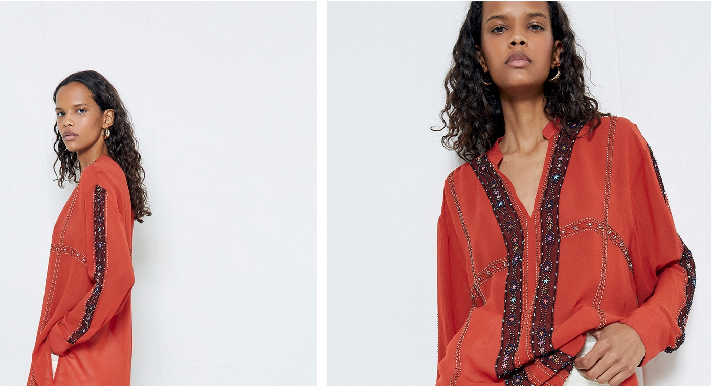 Uno de los diseños más interesantes de Sfera es esta sobrecamisa con detalles bordados que podrás comprar en varias tallas y por solo 39,99€.