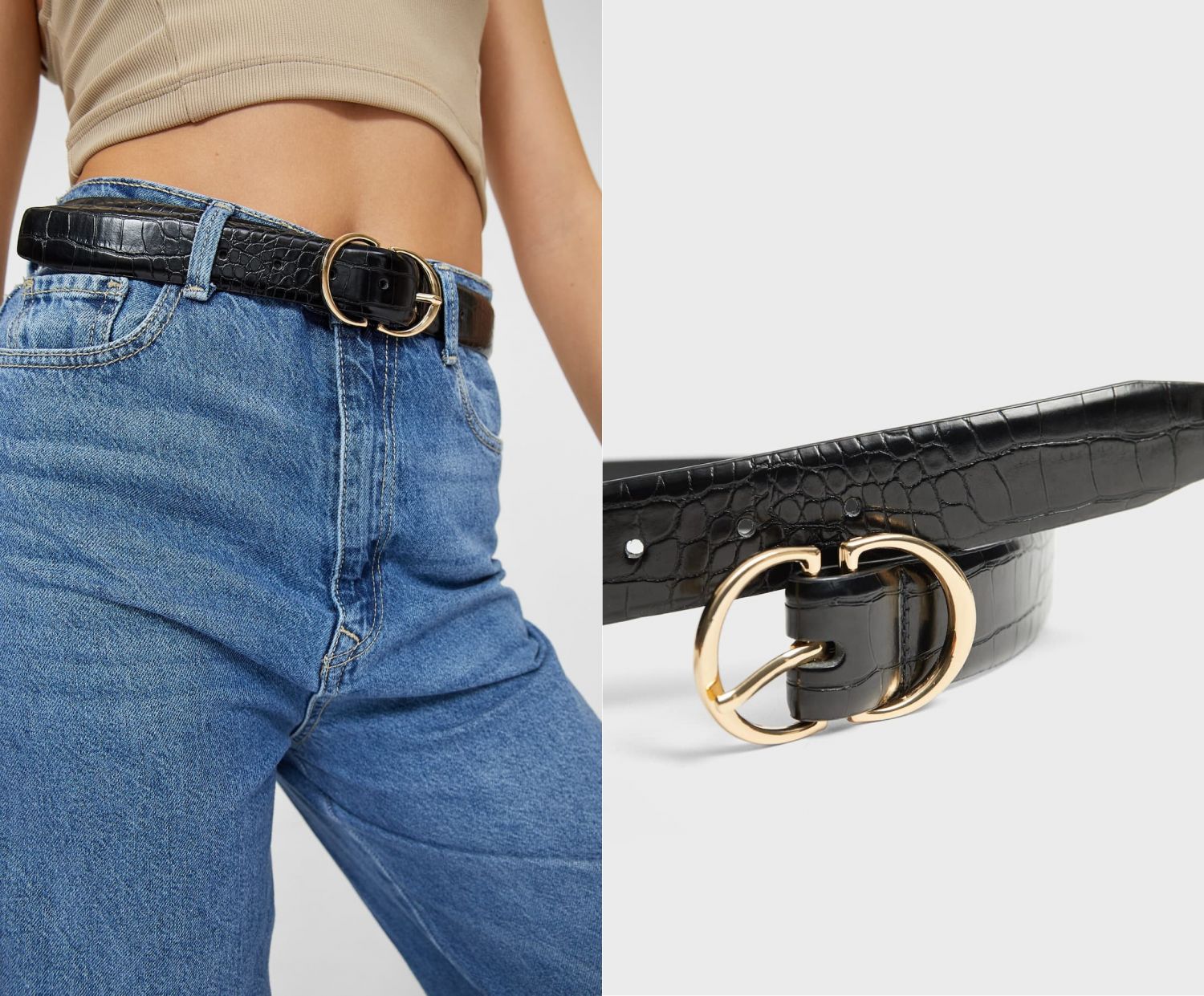 Este cinturón de efecto de piel de cocodrilo y hebilla doble de Stradivarius es una de las piezas más destacadas de su colección de complementos, y puede ser tuyo en varios tamaños por 7,99€.