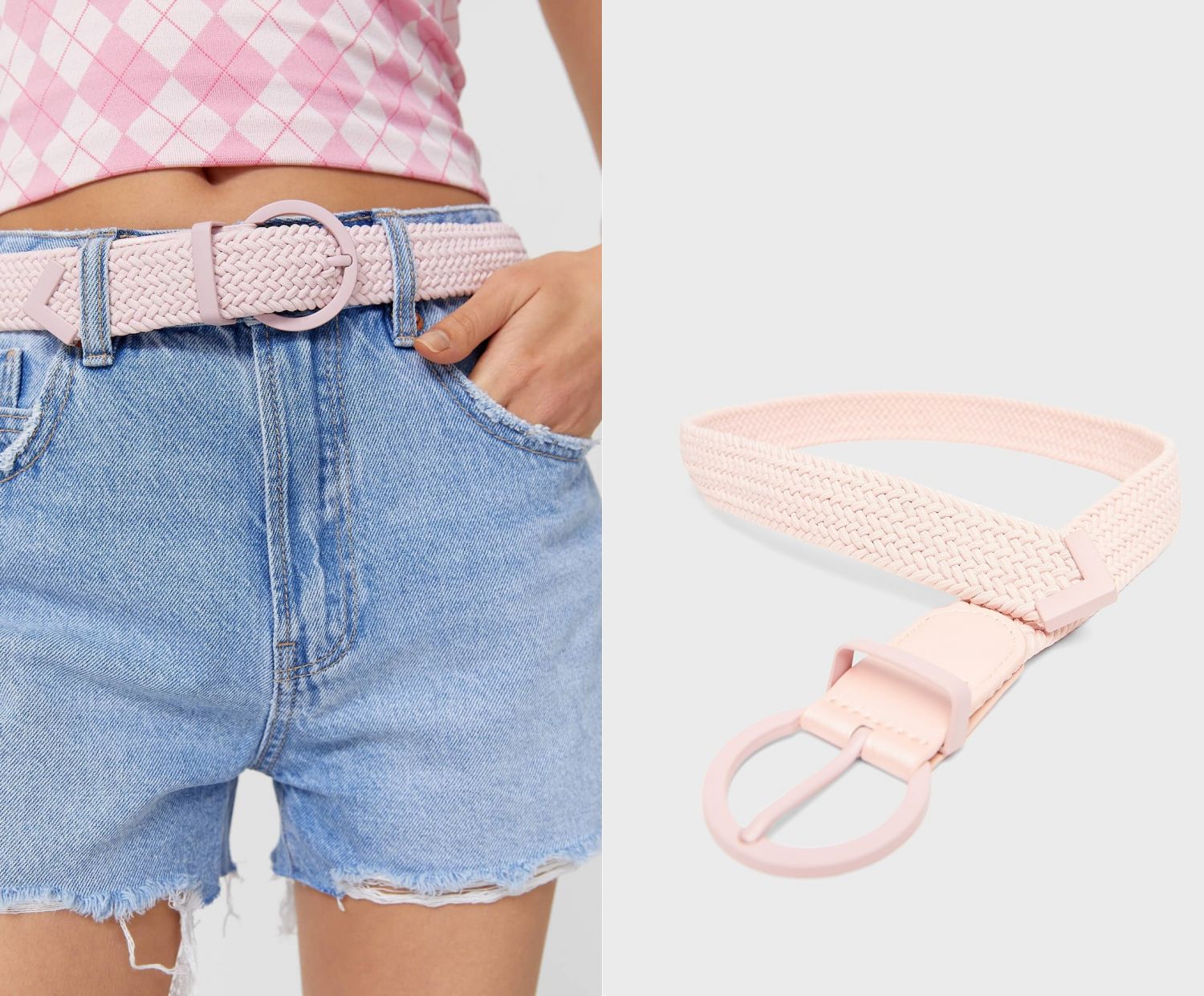 Es un cinturón con un diseño juvenil y con una correa con efecto trenzado que podrás encontrar en tres colores entre los que elegir: rosa, azul celeste y amarillo.