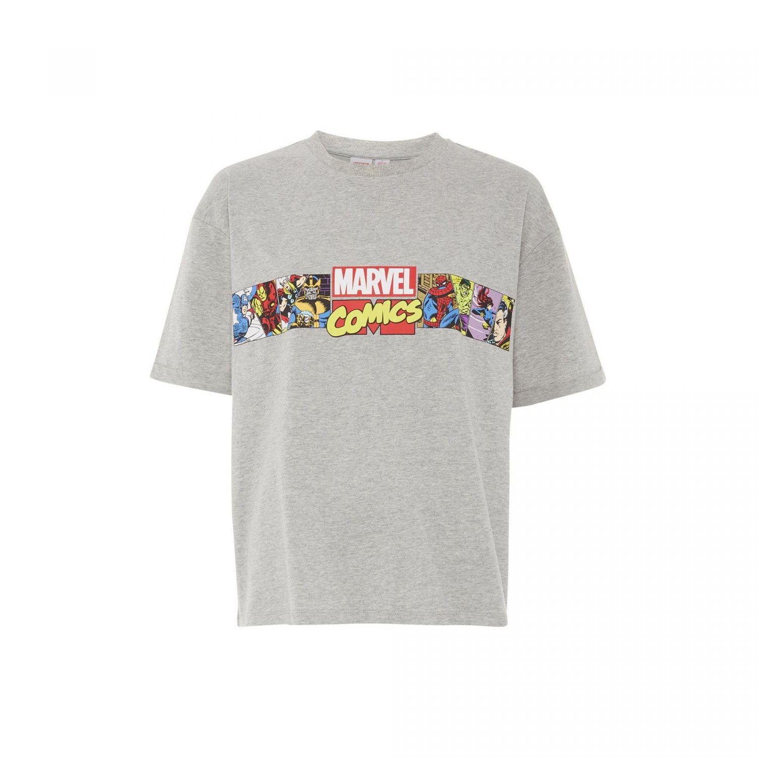 Seguimos con las licencias y en este caso nos fijamos en una camiseta de Marvel Comics, perfecta tanto para chicas como para chicos. Es una prenda de estilo clásico con cuello redondo y manga corta, en un color gris jaspeado. Lo que la hace especial es su estampado.