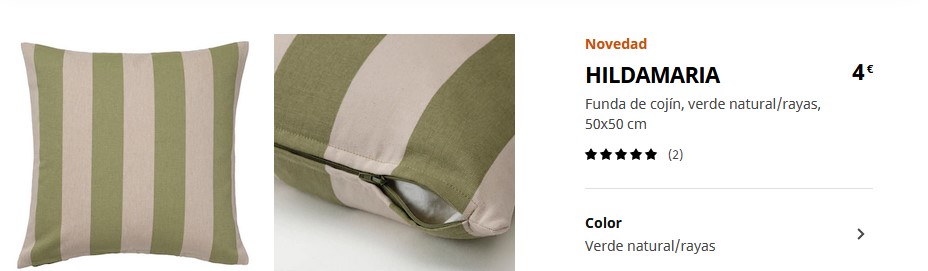 Se caracteriza por ser una funda de cojín, que es de color verde natural y que tiene un tamaño de 50×50 cm. Esta es fabricada en algodón, por lo que es considerado un material completamente suave que requiere mucho cuidado. Además, se puede lavar a máquina, se puede sacar la funda gracias a la cremallera, que está completamente oculta.