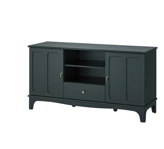 Atención a este mueble de salón de Ikea que te mostramos a continuación. Es, sin ninguna duda, uno de los que más nos ha llamado la atención de todos lo que hemos tenido la oportunidad de ver. Lo que más nos ha llamado la atención de él es si elegante diseño, pero sobre todo su bonito color con tonos azules verdosos. Cuenta con dos cajones en los laterales y tres baldas en la parte central. También está disponible en color blanco y cuesta solo 299 euros.