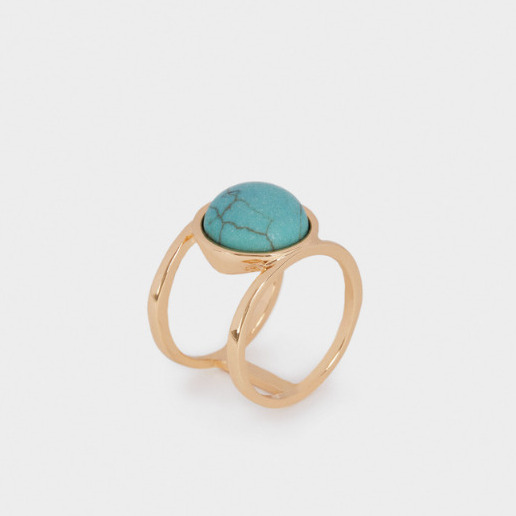 La última vez que pasamos por una de las tiendas que Parfois tiene repartidas a lo largo del país no enamoramos de uno de sus artículos. Se trata, en concreto, de este anillo que te mostramos en la imagen. Como puedes ver se trata de una pieza que tiene un diseño muy original. Pues una vez puesto deja gran parte del dedo al descubierto al estar formado a base de tiras. Además tiene una piedra muy bonita color azul turquesa en el centro. Pero lo mejor es su precio, porque si la quieres tan solo tendrás que pagar por él 6 euros.