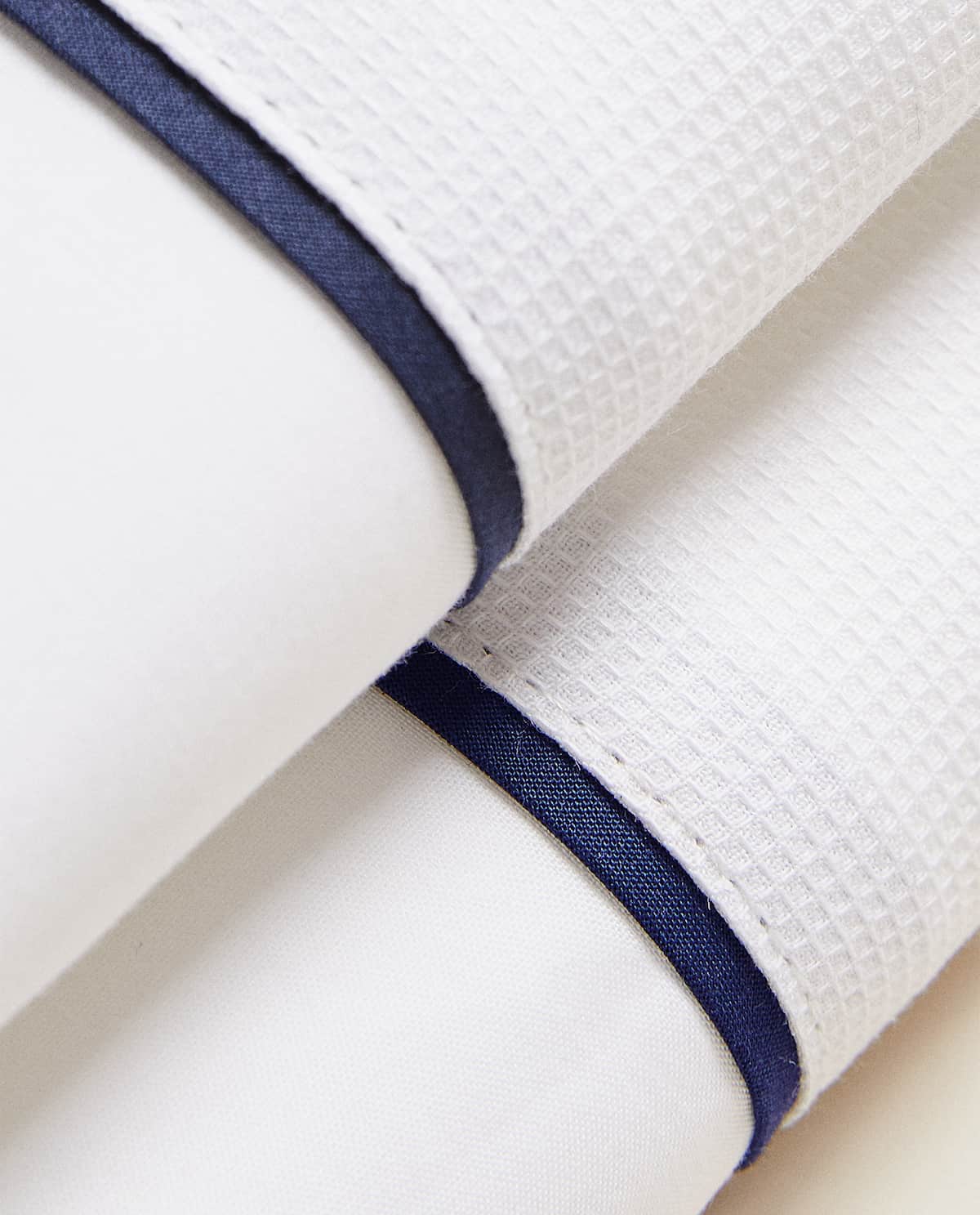Una sábana encimera de algodón 100% (percal de 200 hilos) y con un atractivo diseño gofrado y ribete a contraste en el embozo.