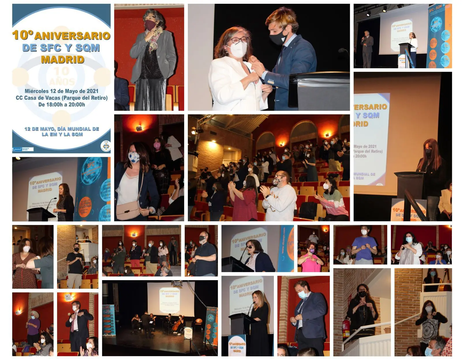 La Asociación de síndrome de fatiga crónica y sensibilidad química múltiple de Madrid, celebró su 10 aniversario en la Casa de Vacas del Retiro madrileño en un acto dónde concedió la mención de honor «Solidarios con SFC-SQM Madrid» a la Consejería de Sanidad de la Comunidad de Madrid y sus trabajadores, a Organizaciones de Pacientes, médicos y empresas entre otros por su labor solidaria con estas patologías