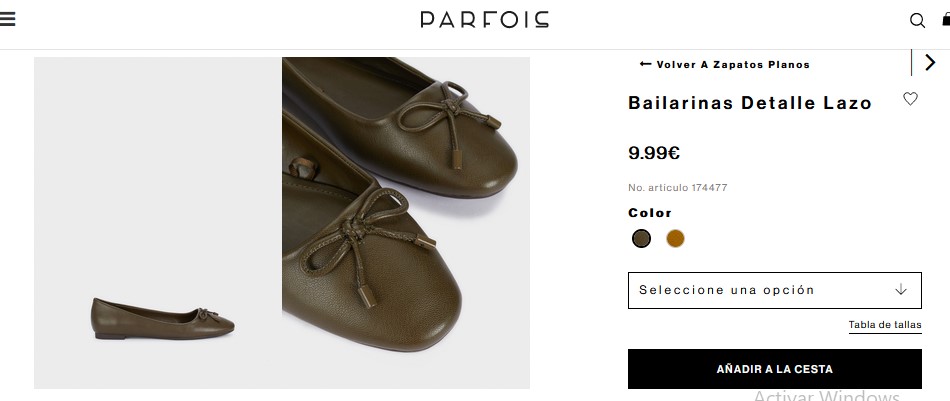 Es uno de los modelos de bailarinas preferidas por las mujeres, debido al hermoso estilo y diseño que tiene. inclusive, cuenta con un hermoso lazo en la parte delantera, haciéndola perfecta para ser usada en cualquier momento y sobre todo en esta primavera. Están fabricadas en la parte exterior en 100% de poliuretano, mientras que en la parte interior en 92% poliuretano y 8% de poliéster. Inclusive, la composición de la suela es de 100% de caucho, haciéndola resistente y con buena durabilidad a pesar del tiempo. Entonces, qué esperas para adquirir esta hermosa bailarina por Parfois a un precio accesible de 9.99€.