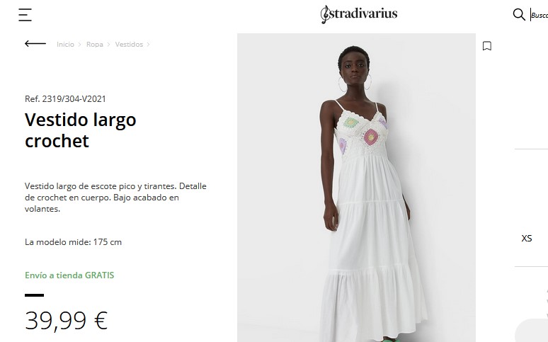 Este vestido está diseñado con un largo de escote pico y tirante, además cuenta con detalles de crochet en el cuerpo. Y, tiene un hermoso acabado en volantes; siendo fabricados 100% en algodón, por lo que son perfectos para usar en cualquier reunión de amigos y familia. Son fabricados en 100% de algodón, por lo que se debe lavar a máquina a una temperatura de 30 grados, centrifugado corto. Además, no debemos usar lejía o blanqueador, se debe planchar a temperatura máxima de 110 grados y no usar la secadora. Entonces, se pueden llevar este hermoso vestido por Stradivarius a un precio accesible de 39,99 €.