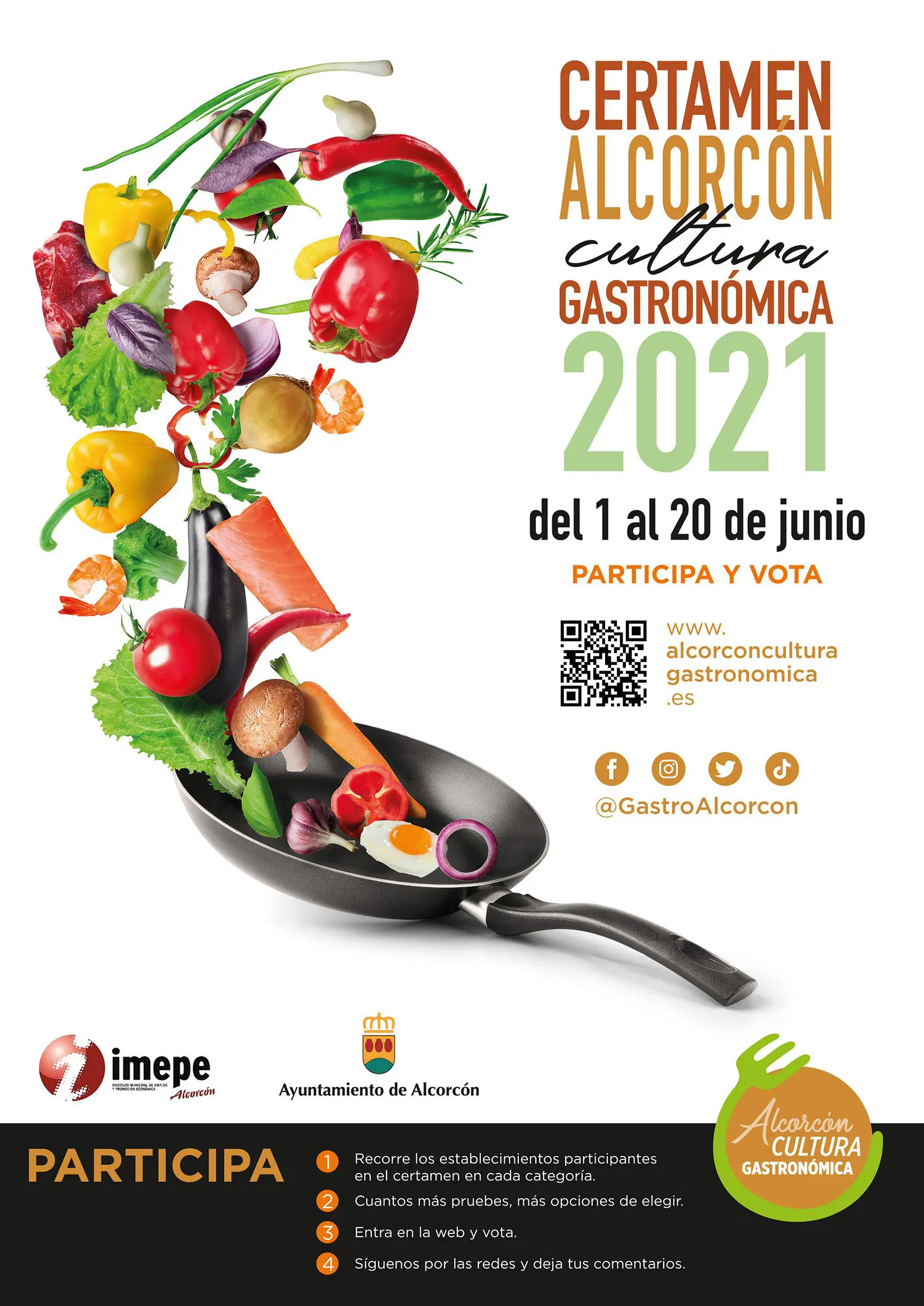 El Primer Certamen de Gastronomía se celebrará entre los días 1 al 20 del mes de junio; y en su primera edición tratará de promocionar la cocina saludable. Para ello seleccionará los 10 mejores platos, las 10 mejores tapas, los 5 mejores postres o productos de repostería, y los 5 mejores productos de comida a domicilio. Con ello se seleccionará el Top-30 de la gastronomía de Alcorcón, mediante una combinación del voto del público y el dictamen de un jurado compuesto por expertos profesionales del sector, entre los que habrá cocineros y críticos gastronómicos.