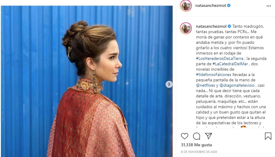 Al poco de tener su segundo hijo, la propia Natalia Sánchez anunciaba en redes el nuevo proyecto en el que estaba inmersa: “Me moría de ganas por contaros en qué andaba metida y ¡por fin puedo gritarlo a los cuatro vientos! Estamos inmersos en el rodaje de ‘Los Herederos De La Tierra’, la segunda parte de La Catedral Del Mar, dos novelas increíbles de Ildefonso Falcones llevadas a la pequeña pantalla de la mano de @netflixes y @diagonaltelevisio”, confesó radiante.