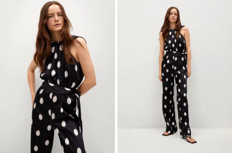 Diseñado para la mujer de hoy. Modelo único dinámico, atractivo. Resaltaras tu belleza y modelaras tu figura. Mango crea este mono pensando en la mujer creativa. Elegante, bello y totalmente a la moda. Este mono es otra pieza de la colección fiesta. Elaborado en tejido fluido. Estampado de lunares. De diseño largo con cuello halter. No posee mangas, con cinturón desmontable. Forro interior. Este mono ubícalo en nuestras tiendas Mango a un precio de 49.99 Euros.