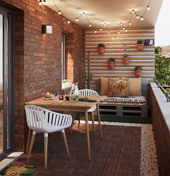 Esta idea de decoración de balcones resulta clave para aprovechar por las noches tu pequeño espacio exterior. En Leroy Merlin tienes todas las soluciones de iluminación exterior que necesitas para dar vida a tu proyecto. Instala algún foco o aplique en la pared y completa la iluminación ambiental con tiras leds, lámparas de mesa o de suelo y guirnaldas. La iluminación solar te ayudará a aprovechar los rayos del sol cuando cae la noche y te permitirá ahorrar.